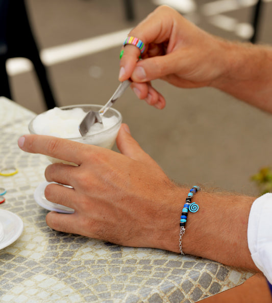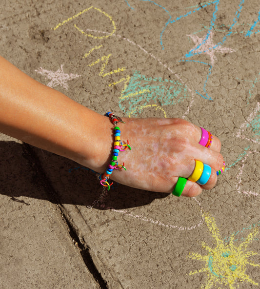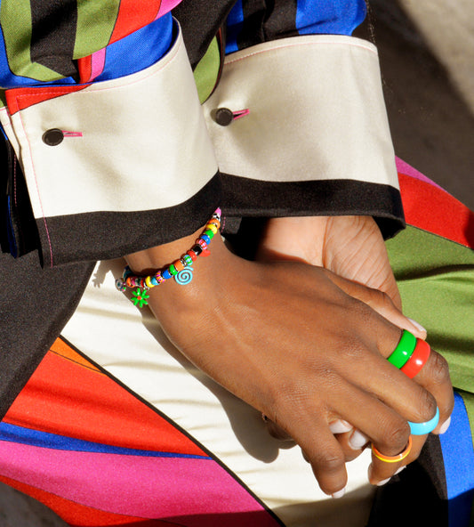 Handmade bracelet pre-sets in 18k gold-plated sterling silver and enamel, designed as balanced, ready-to-wear combinations.