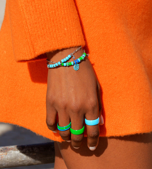Handmade bracelet pre-sets in 925 sterling silver and enamel, designed as balanced, ready-to-wear combinations.